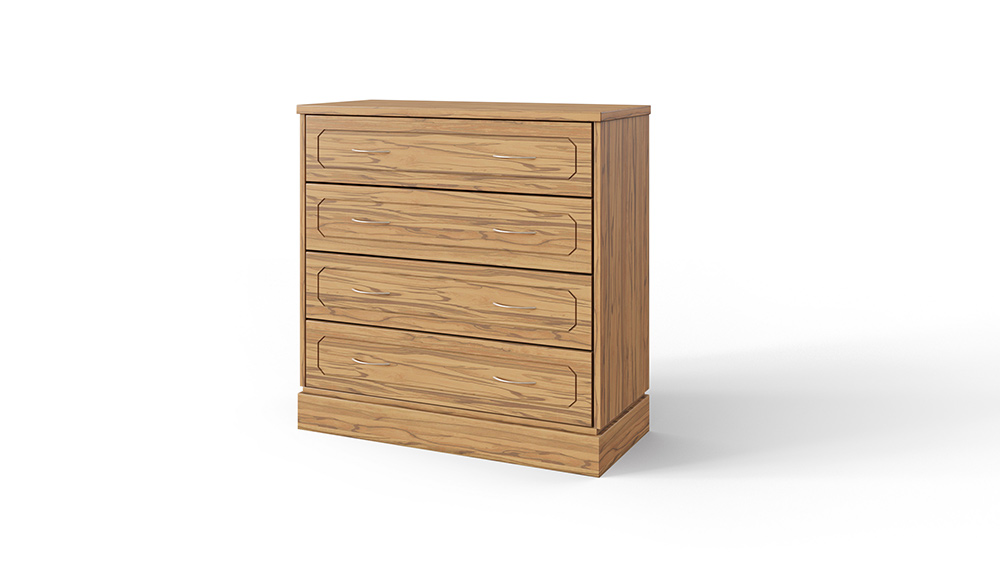 Комод выполнен в современном стиле «массивный минимализм», отличительной особенностью которого является четко выверенная простота в комбинации прямых углов элементов конструкции и декора. 4 выдвижных ящика комода, оснащены роликовыми телескопическими направляющими с увеличенным сроком службы, имеют профессионально фрезерованные фасады толщиной 21 мм с тщательно подобранной лицевой фурнитурой от лидеров мирового рынка. Опционально выдвижные ящики комода могут быть оснащены телескопическими направляющими с системой автоматического дозакрытия ящика. Толщина цельноламельного мебельного щита из массива ценных пород древесины, используемого на лицевых поверхностях изделия составляет 21 мм. Мебельный щит используемый в остальной конструкции имеет толщину 12 мм. Лакокрасочное покрытие от ведущих производителей Италии и Испании не только придает изысканность, подчеркивает натуральность и благородство натуральной древесины, но надежно защищает мебель от воздействий окружающей среды и механических повреждений. Сборка не требуется.