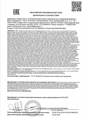 * Производителю предоставлено право вносить конструктивные изменения, не влияющие на эксплуатационные качества (замена материала канта, чехла, покрытия).